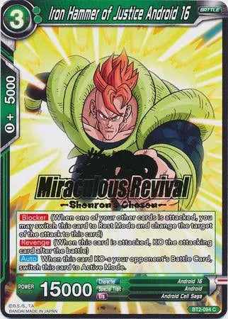 ![Iron Hammer of Justice Android 16 (Shenron's Chosen Stamped) (BT2-094) [Tournament Promotion Cards] - Doe's Cards](http://doescards.ca/cdn/shop/products/2c27e02f-a76a-5c80-bed9-b76444c764ee_f3166b62-7710-42a2-b06f-843f13b21b30.jpg?v=1765170848&width=322)