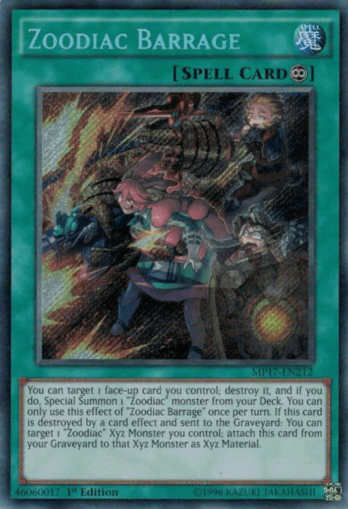 ![Zoodiac Barrage [MP17-EN212] Secret Rare - Doe's Cards](http://doescards.ca/cdn/shop/products/009194b7-6afd-51d8-96a1-b4f041df5f6f.png?v=1759821961&width=690)